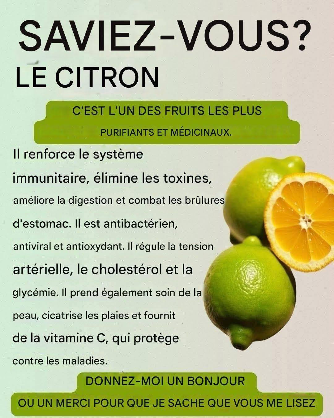 Le citron est l’un des fruits les plus connus au monde, non seulement pour sa saveur acidulée et rafraîchissante, mais aussi pour ses nombreuses vertus médicinales et culinaires. Utilisé depuis l’Antiquité en cuisine et en médecine naturelle, il continue d’être un allié précieux pour la santé et le bien-être.